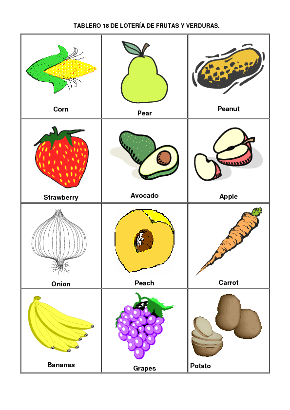 Frutas Y Verduras En Ingles Y Espanol Con Dibujo Para Pintar Imagui