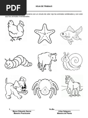 Hoja De Trabajo Animales Vertebrados E Invertebrados Docx