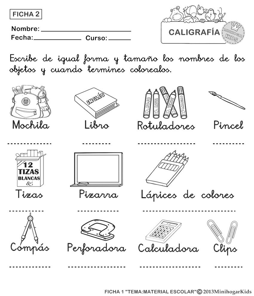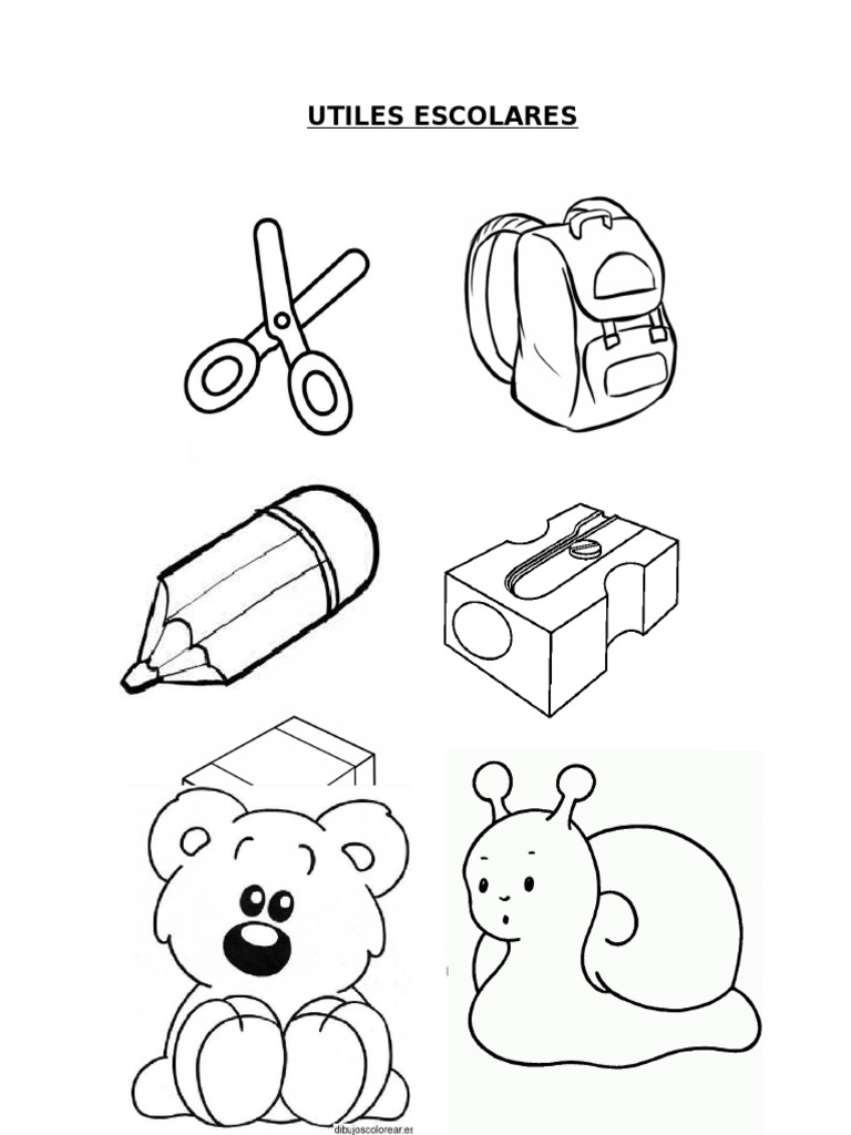 Dibujos De Materiales Del Cole Para Colorear Hojas De Trabajo De